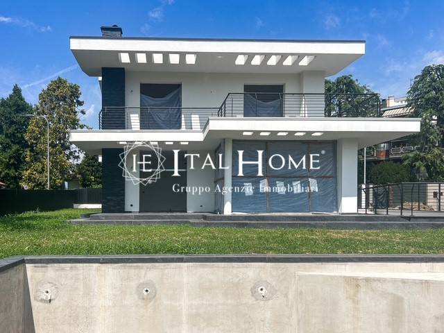 La villa risulta caratterizzata da linee pulite, ampie vetrate a tutta altezza e materiali di pregio come i setti in pietra quarzite nera e silicato bianco auto-pulente in facciata, o i marmi in pietra lavica nera dei davanzali,