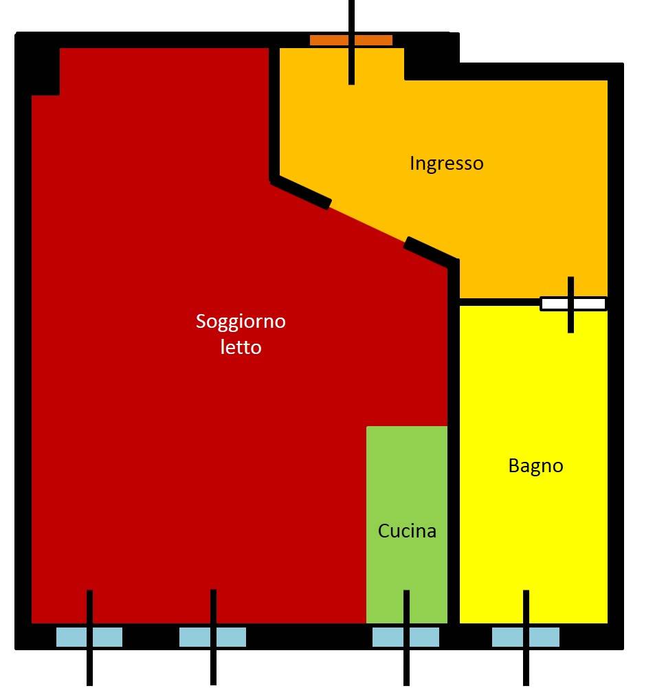ambienti estremamente funzionali, distribuiti in modo da massimizzare il comfort abitativo: entrando veniamo accolti dall'ingresso che ci conduce alla zona giorno/notte con moderna cucina a vista, proseguendo poi verso l'ampio bagno finestrato con box doccia.